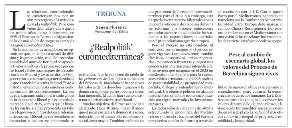 Read also by the same author: Europe and the Mediterranean: Between Mr Trump and the New Global South (IEMed Mediterranean Yearbook 2025)