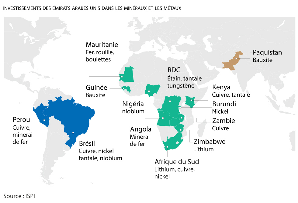 Les EAU se tournent vers l’étranger avec une stratégie d’investissement par le biais de leur propre fonds souverain et d’autres fonds nouvellement créés dans des pays riches en minéraux. Ils ont activement investi dans des actifs minéraux critiques à l’étranger, tels que le cuivre au Pérou, le lithium au Zimbabwe, le tantale au Kenya et la bauxite au Pakistan.