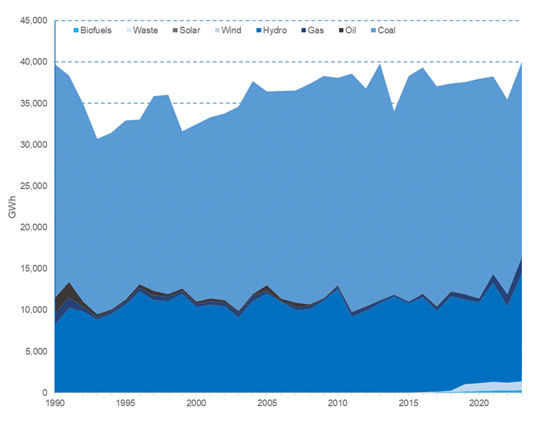 CHART 2 Serbia’s Electricity Generation, 1990-2023