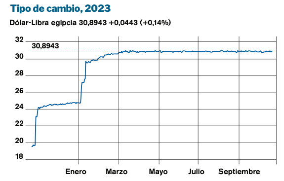 D’autre part, l’Égypte se trouve dans une situation difficile. L’inflation sous-jacente a plus que doublé entre octobre 2022 (19 %) et août 2023 (40 %). Une grande partie de cette hausse des prix a été induite par l’énorme dépréciation de la valeur de la livre égyptienne, en raison de la rareté des dollars et du caractère intensif en importations des secteurs productifs du pays, qui est également importateur net de denrées alimentaires et de carburant. Le FMI a revu à la baisse le taux de croissance de l’Égypte en 2023, qui est passé de 4,4% à 3,7%.