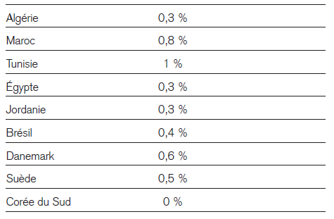 La fraude et l’évasion fiscales mettent à mal l’équité fiscale qui suppose que tous les contribuables soient soumis de manière égale à l’accomplissement de leur devoir fiscal. La fraude fiscale suppose l’utilisation de méthodes et moyens illégaux pour éviter de payer l’impôt. Alors que l’évasion fiscale se situe à la frontière entre la légalité et l’illégalité en usant de tactiques qui font souvent appel à l’expertise fiscale, afin de contourner la législation fiscale, de payer moins d’impôts ou carrément de se soustraire à l’impôt en détectant les défaillances législatives permettant une interprétation biaisée de la loi. Les pertes fiscales engendrées par les économies du Maghreb à cause de ces deux fléaux sont importantes (tableau 3). Ces pertes sont particulièrement élevées en Tunisie et au Maroc en comparaison avec d’autres pays en développement et des pays qui font référence en matière de transparence fiscale et de gouvernance publique.