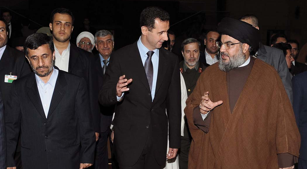 Siria, pese a las tentativas americanas de apartarla de Irán, continua fiel a su alianza de hace 20 años. La república islámica persa con su programa nuclear en marcha contra viento y marea, es considerada como una amenaza por Israel y EE UU. Pero son las tropas americanas las que están desplegadas en sus repúblicas vecinas de Irak y Afganistán, o en las bases de Kuwait, de Bahrein, de la Federación de los emiratos árabes… Es Israel quien posee el monopolio atómico en Oriente Próximo.