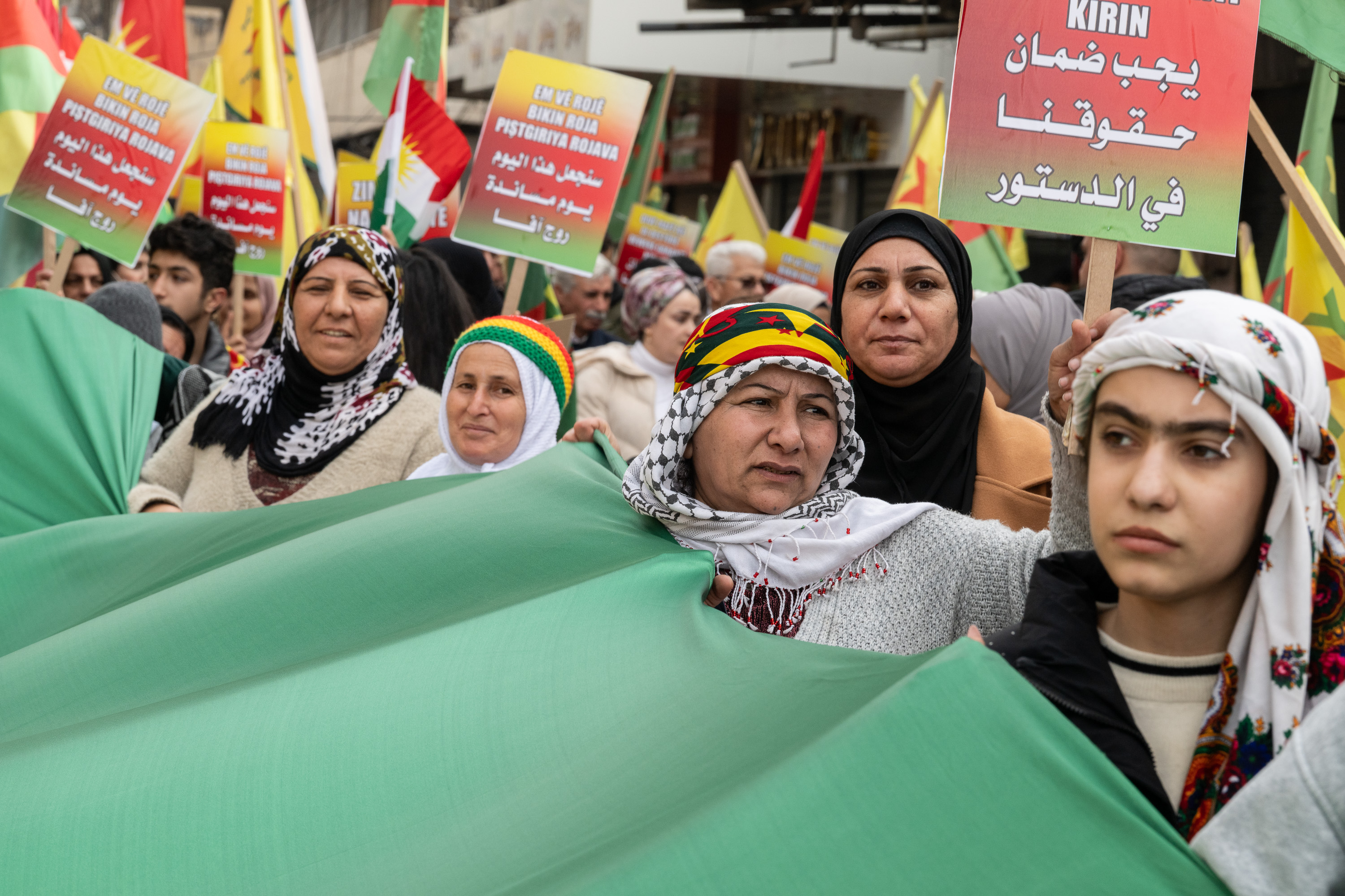 QAMISHLI, SYRIA – FEBRUManifestación en defensa de los derechos kurdos tras el acuerdo entre las FDS y el gobierno sirio. Qamishli, Siria, 10 de febrero de 2026./Guy Smallman/Getty Images