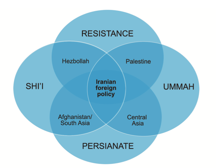 This paper offers a schema for understanding how different Iranian identity currents are intrinsic to the ideational bases that shape Iranian foreign policy. This is an explanatory framework based on four key Iranian identity markers that are prominent in its foreign policy priorities. It should be noted here that these are more about Iran’s immediate geopolitical environment. Iran is considered to be a ‘Middle Eastern’ country, but it is an important neighbour, and in many ways a connector of wider regional systems, neighbouring Central and Southern Asia, as well as Europe and Russia. This shapes its engagement with such regions and has allowed Iran to draw on its historical and cultural ties with geocultural zones and regions beyond the Middle Eastern milieu. The four identity markers that will be explored here are as follows: the ‘Persianate World’; the ‘Shi’i World’; the ‘ummah’; and the ‘resistance’. These are initially presented individually, but a key point is that these are areas that intersect in many ways, and this will be evidenced as the paper progresses.