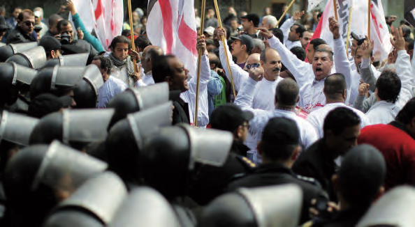 La confrontación era, pues, inevitable para el cambio: “Teníamos que quebrarlas… Ojalá hubiera habido otra manera pero no la había… ahora tenemos que arreglarlo”, declaró en una entrevista que realicé en noviembre de 2011, un activista adolescente que participó en la confrontación de camino hacia la plaza Tahrir el 28 de enero de 2011. De hecho, durante tres décadas, Hosni Mubarak gobernó Egipto con una mezcla de cooptación clientelar y represión brutal. Continuó lo que Anuar el Sadat había empezado: liberalización política limitada, una fachada electoral con elecciones sólidamente amañadas y la creciente dependencia en dos instituciones de seguridad concretas, el departamento de Investigaciones de la Seguridad del Estado (SSI, en sus siglas en inglés), un aparato de inteligencia nacional dotado de 100.000 efectivos, y las CSF, una fuerza paramilitar con 300.000 efectivos.