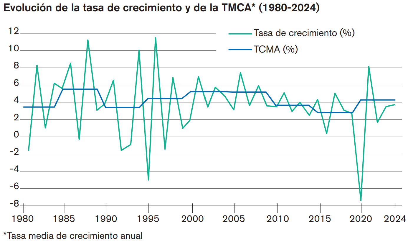Por otro lado, cabe señalar que el crecimiento del PIB de los 15 años posteriores a la década de los noventa es el doble que el de los últimos 15 años. Este primer período de mayor crecimiento coincide con el lanzamiento del proyecto de la marroquinización y el impulso de la industria en los años noventa, que dio un nuevo aliento a la ambición nacional de transformar la economía. El segundo período coincide con el predominio del PMV, que parece aportar menos ganancias a la economía nacional. Así, estos altibajos del crecimiento en Marruecos muestran una economía a dos velocidades.